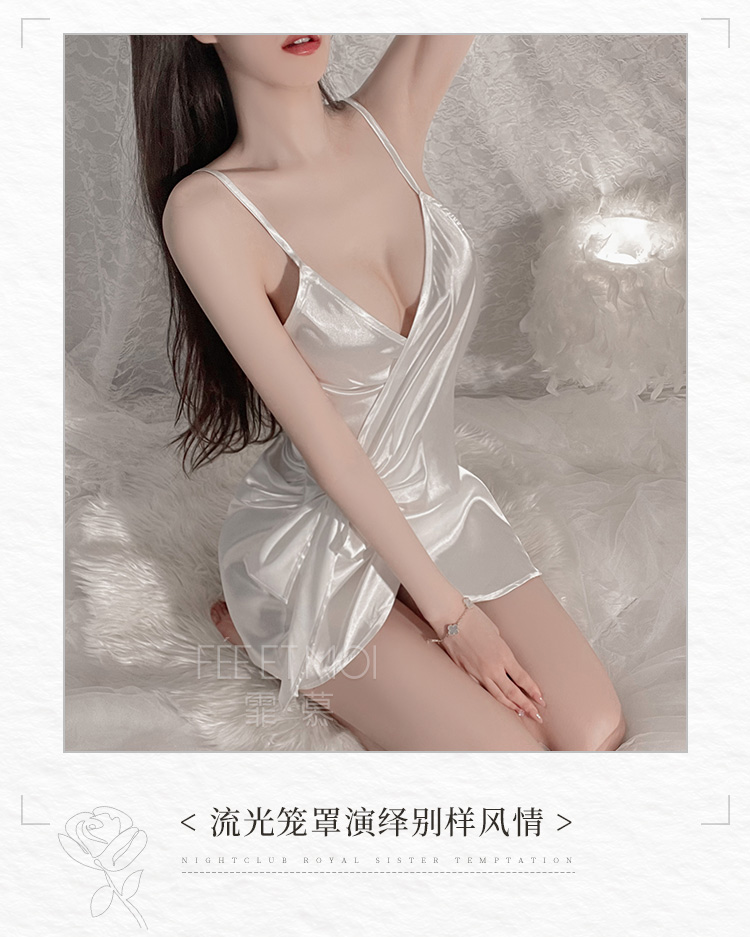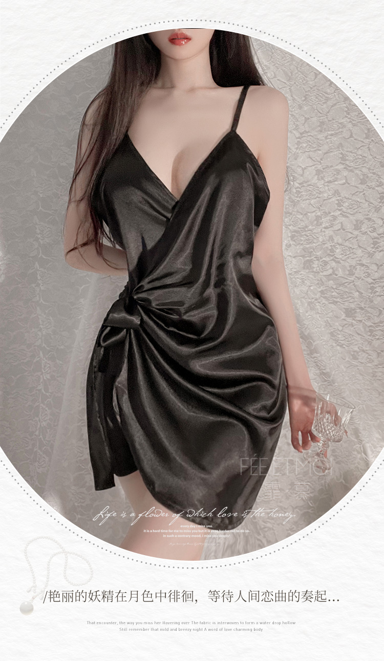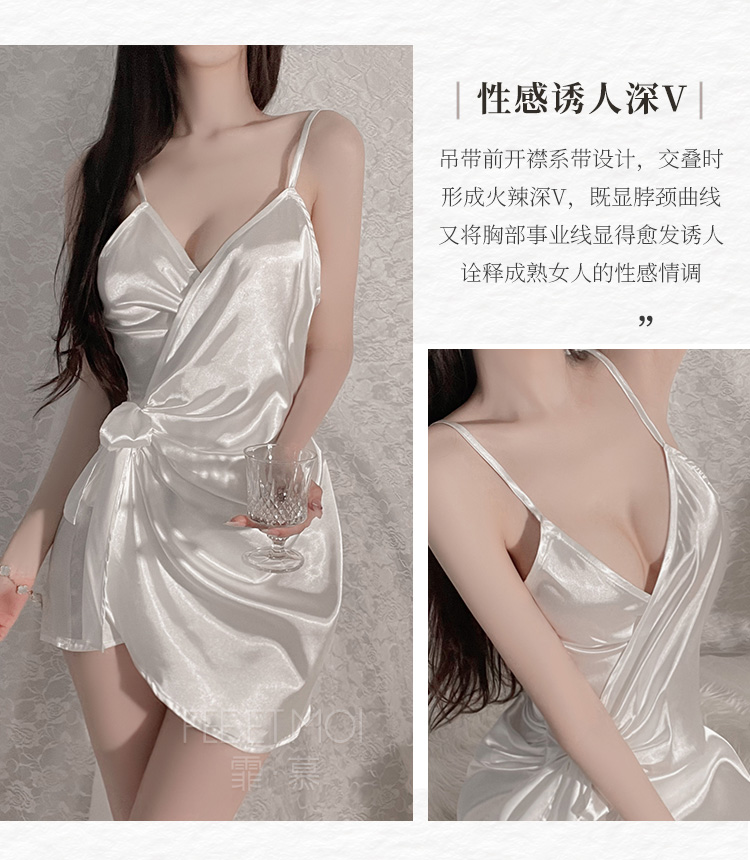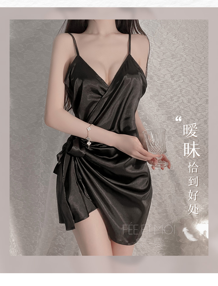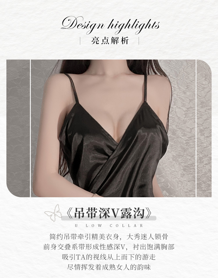 霏慕 深V吊带性感仿真丝睡裙6503