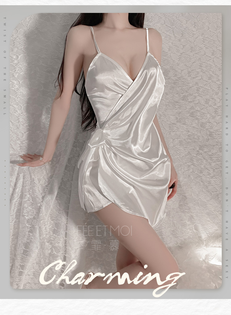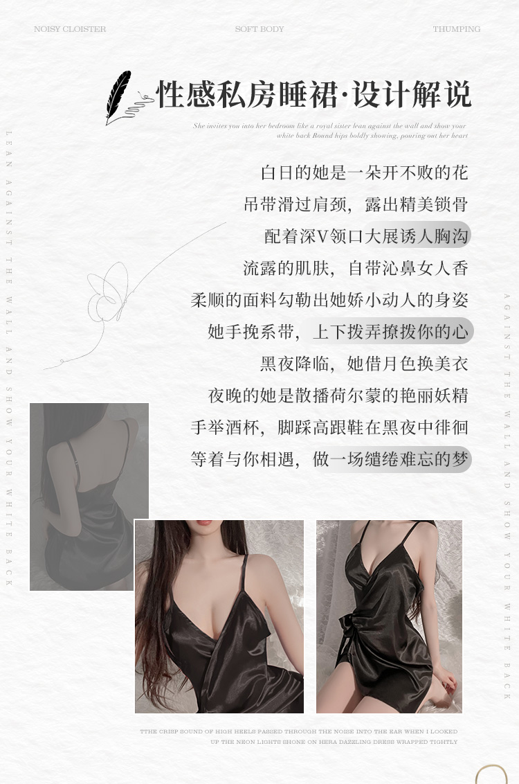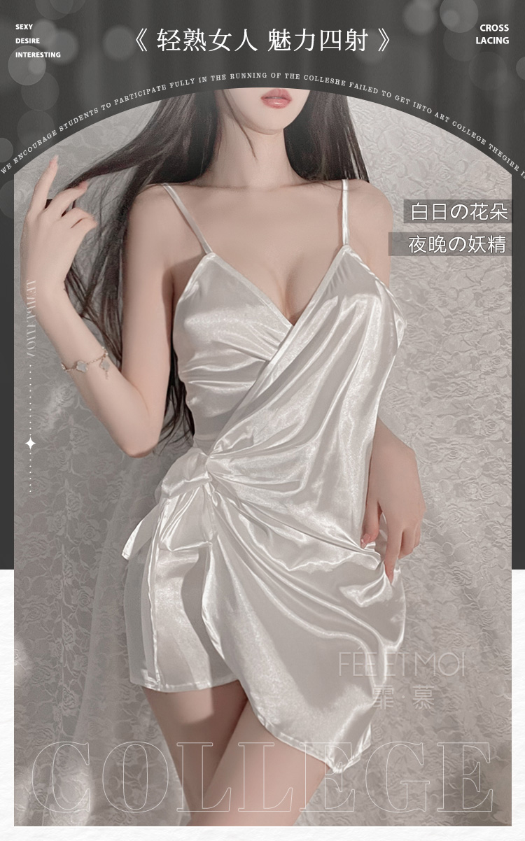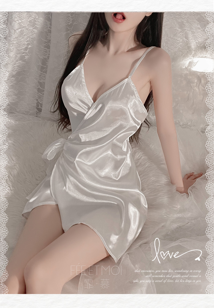 霏慕 深V吊带性感仿真丝睡裙6503