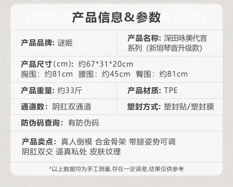 谜姬深田咏美代言男用半身实体阴臀倒模