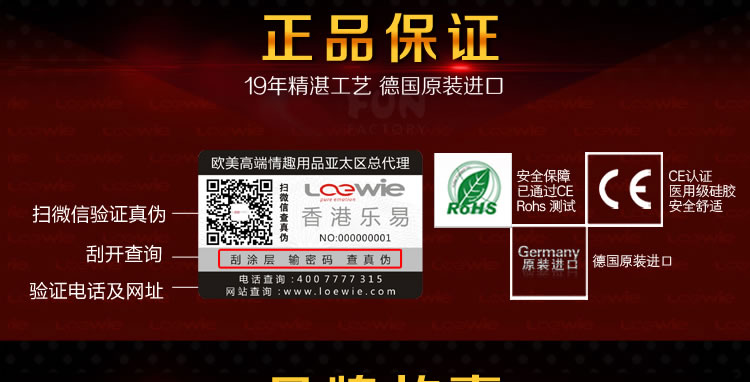 耐美尔情趣商城所有出售的商品均来源于品牌公司,为各品牌授权的正规渠道正品,完善的供应链,正规的采购渠道,入仓全检保障,所有产品均通过国家相关质量认证。