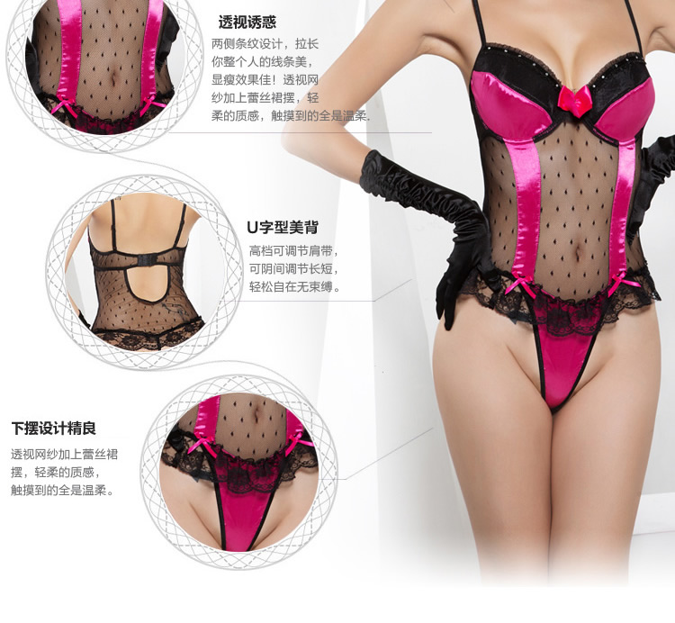 史黛丝 聚拢深V露乳蕾丝连体透视网衣 夜店透明sm制服