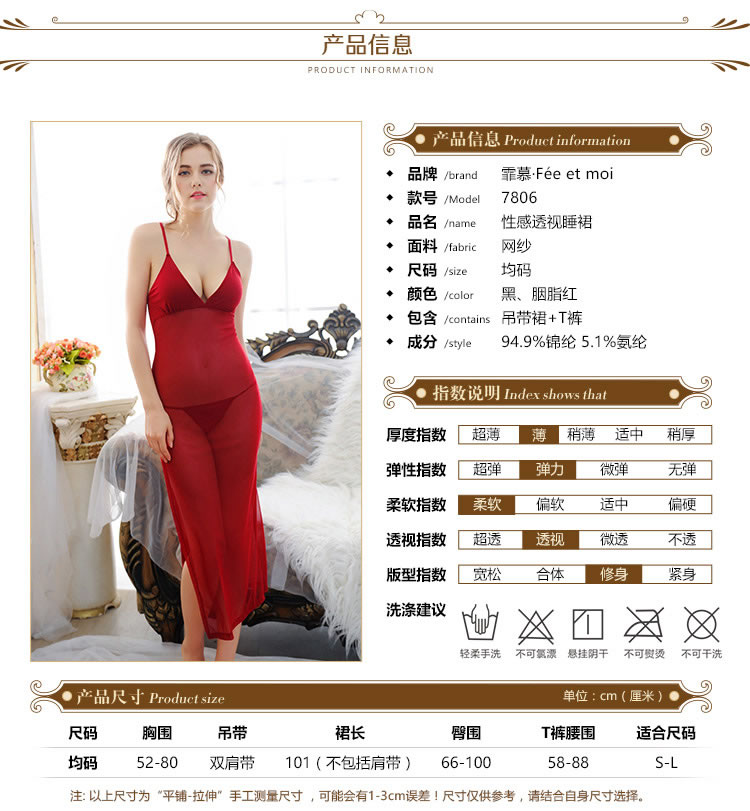霏慕 吊带睫毛蕾丝冰感睡裙6840