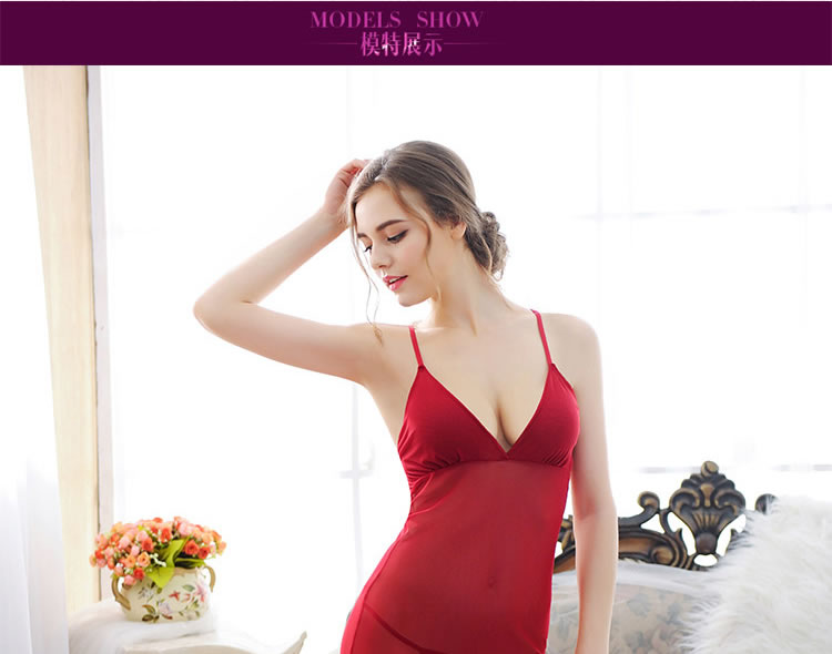 霏慕 深V带胸垫轻奢蕾丝睡裙6639