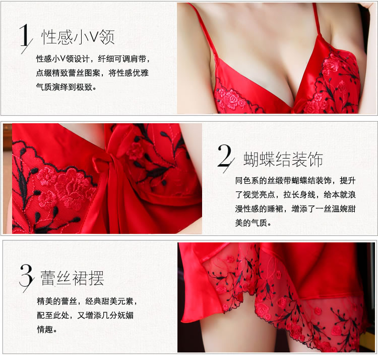 霏慕吊带深V前开襟系带睡裙