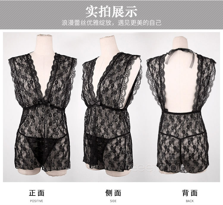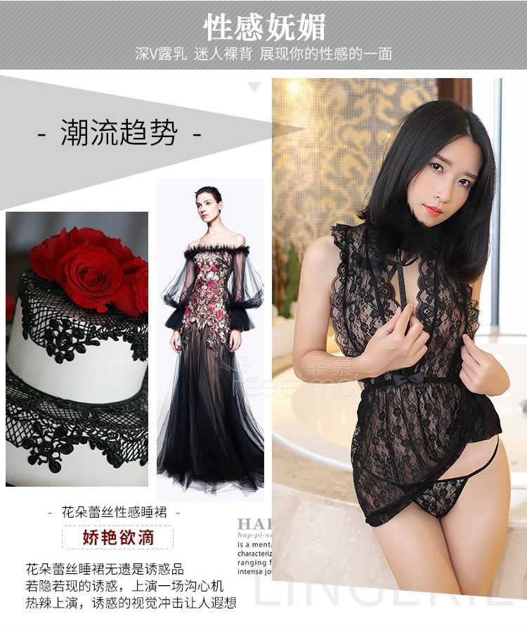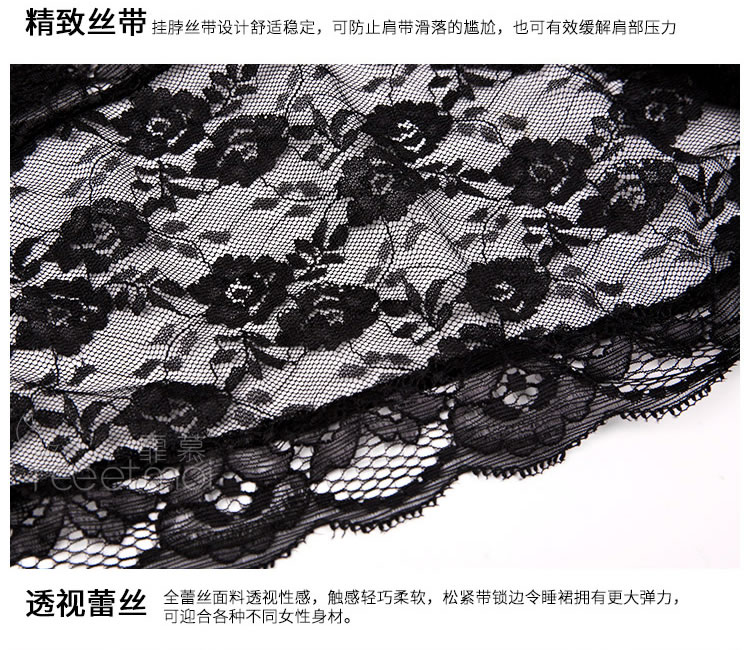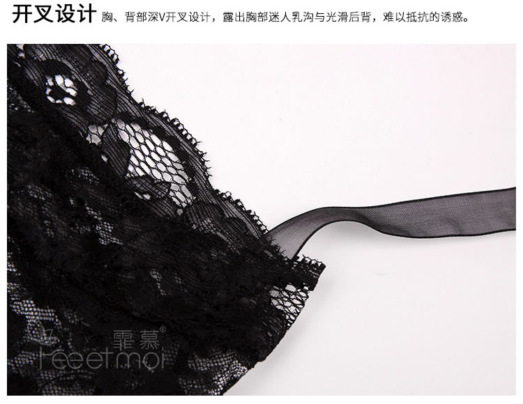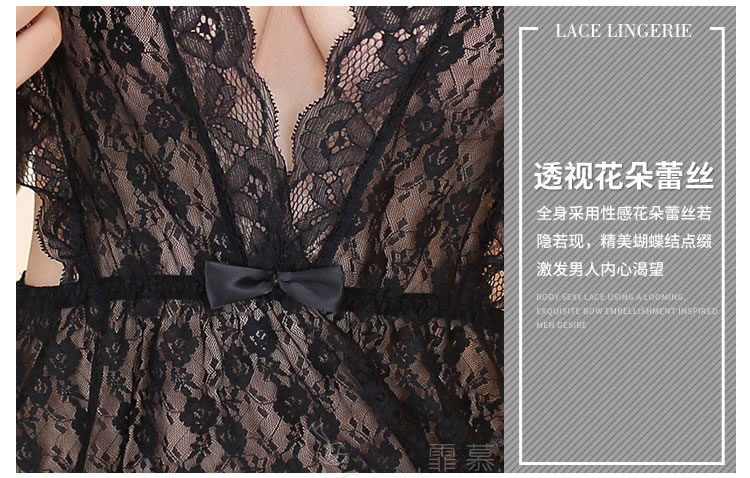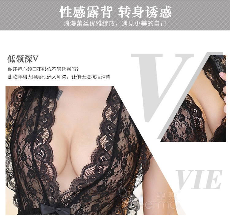 霏慕 深V带胸垫轻奢蕾丝睡裙6639